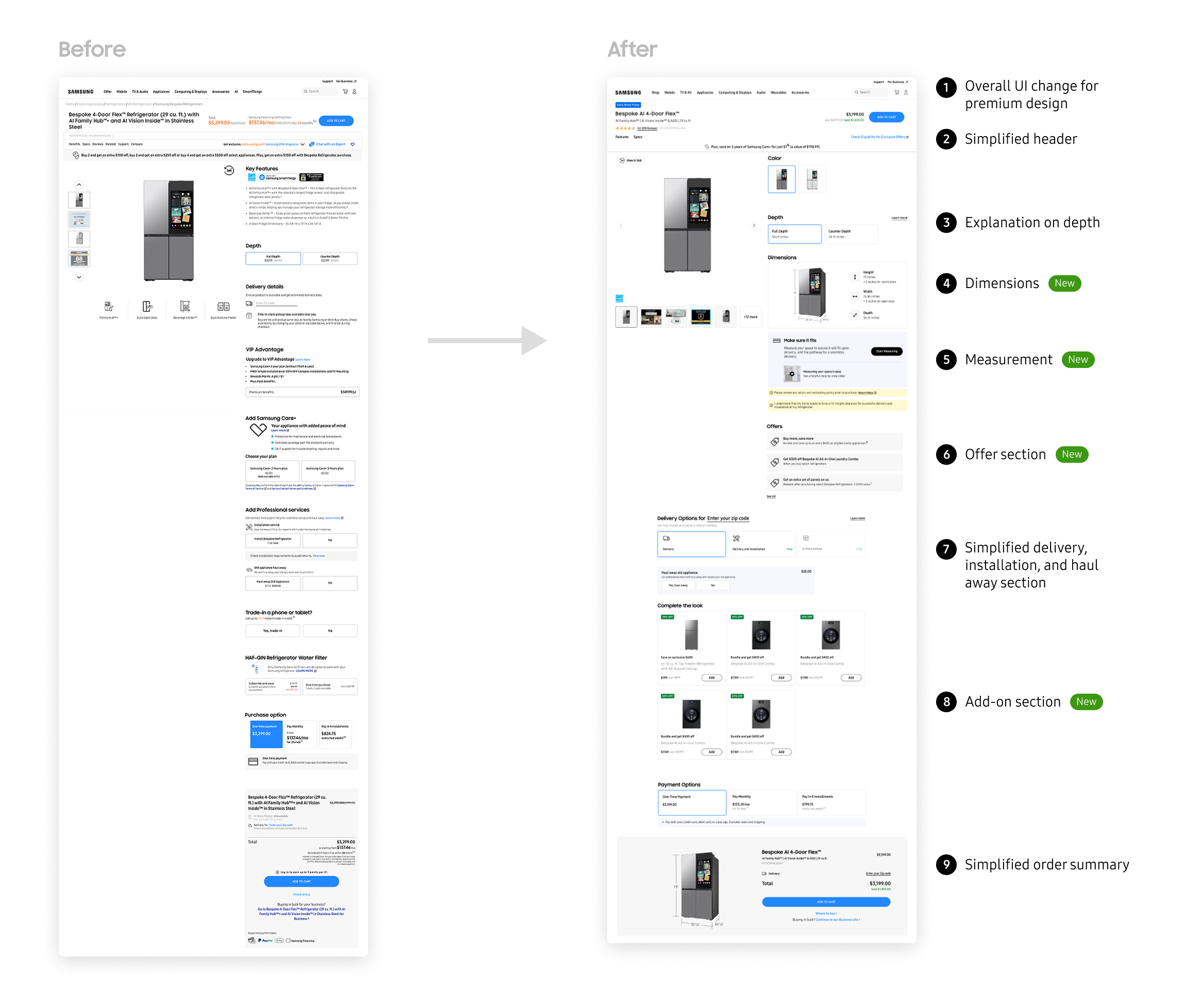 The main design goals centered around creating a premium, user-friendly experience that reflects the brand’s commitment to quality and innovation. Each component of the page was re-evaluated to improve usability, hierarchy, and interaction flow. Guided by user research, the team focused on understanding key customer priorities and behaviors when landing on a product page to design a more intuitive and conversion-driven experience.