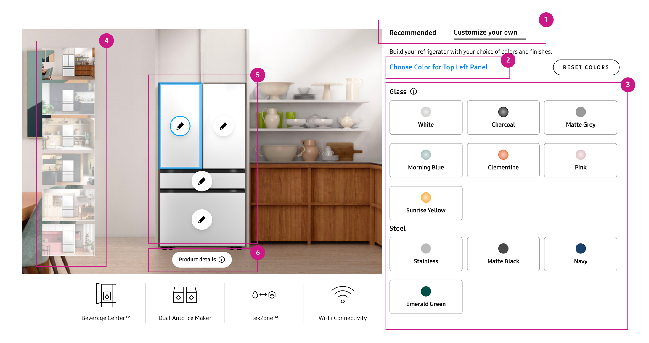 Poor placement of product details link → The link opens a gallery pop-up over the configuration flow, creating an unintuitive experience.